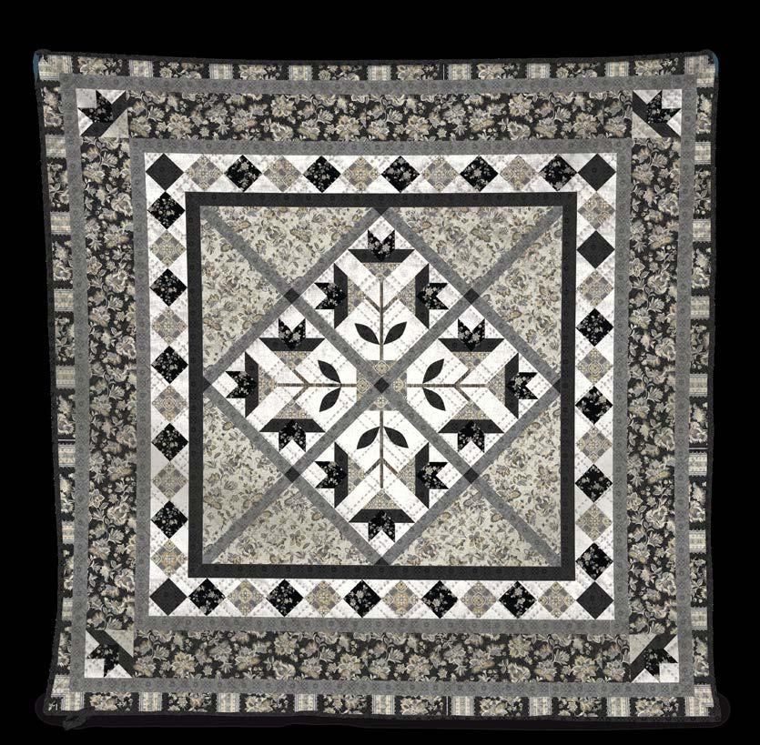 This classic must-have collection comes in 2 color ways: Black & Cream, and Nite & Tan. These traditional Jacobeans, stripes, mosaics and textures combine to make a beautiful quilt.