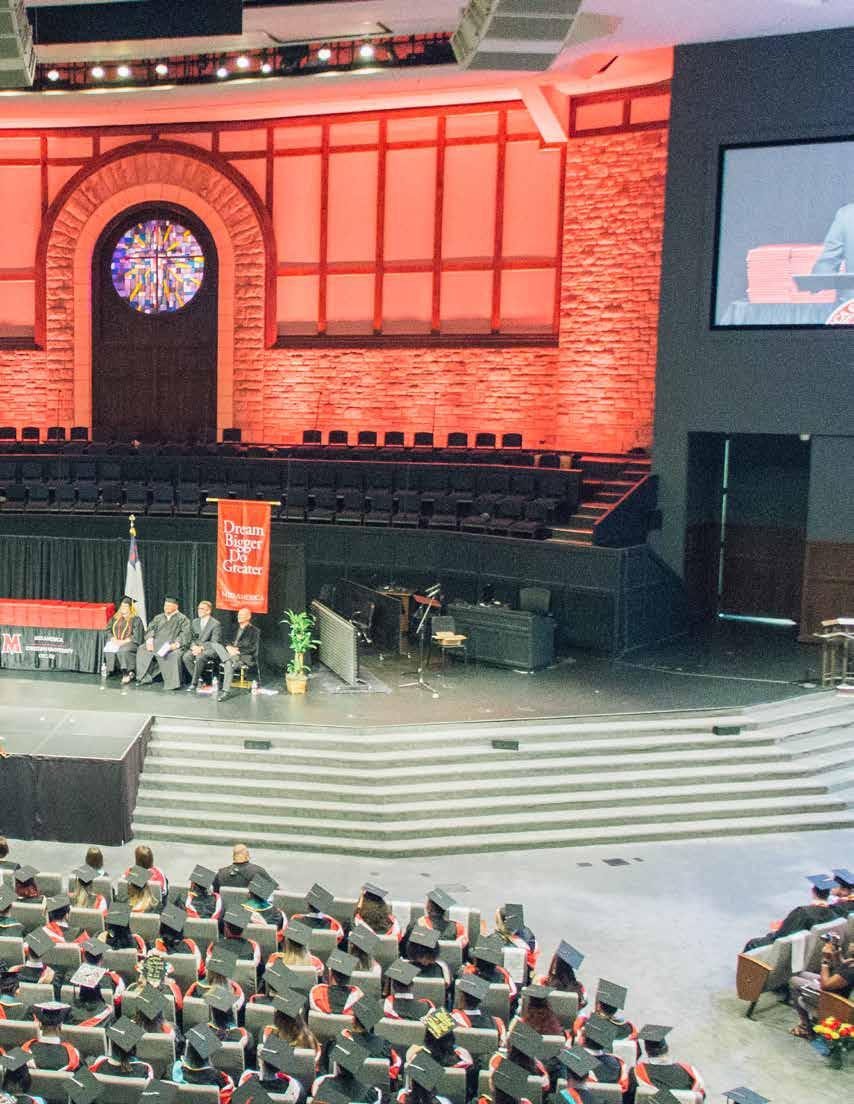 More than 570 new MACU alumni were celebrated Saturday, May 12, as part of the 67th commencement exercises at Crossings Community Church in Oklahoma City. Before MACU President John Fozard conferred degrees, uplifting songs and motivational speeches from university professors and Board of Trustees members peppered the ceremony. Ten students who proved their academic excellence by maintaining 4.0 grade-point averages were honored with distinction. The ceremony was marked with a keynote address by Bishop James Dixon, who leads The Community of Faith Church in Houston. He encouraged graduates to see themselves not simply as students finishing their education, but as God’s answer for a troubled world.
