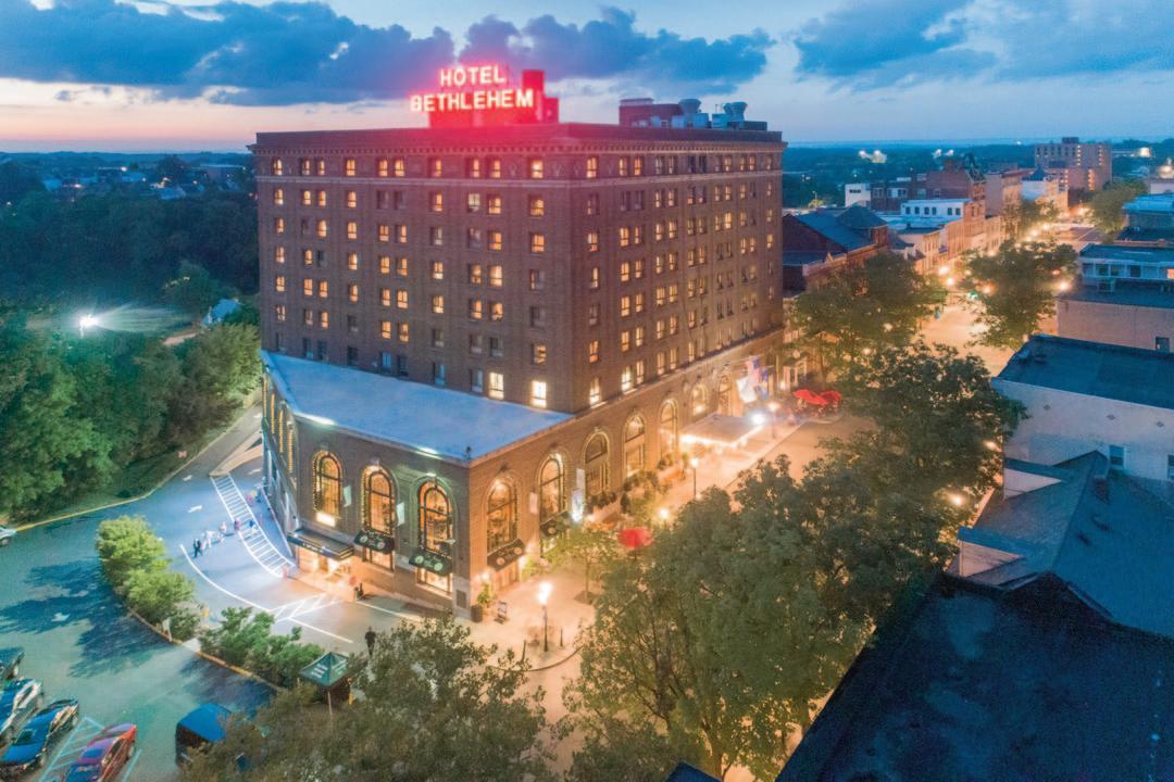 Historic Hotel Bethlehem, built in 1922, is a luxury destination that overlooks the newest US UNESCO World Heritage Site in the heart of Historic Moravian Bethlehem. It sits along America’s #1 Main Street with many unique shopping and dining options. The hotel features 125 guest rooms, nine extended stay suites, and on-site dining options including the elegant 1741 on the Terrace and the Steel Magnolia Spa & Salon. The destination also includes an Executive Conference Center and event spaces.