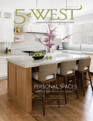 Six Forks Road Raleigh, NC 27609 Phone: 919.782.4710 Fax: 919.782.4763 5 West magazine is published six times annually. Any reproduction in part or in whole of any part of this publication is prohibited without the express written consent of the publisher. Copyright 2024. All rights reserved. 5 West magazine is not responsible for unsolicited manuscripts, photography or art. Unsolicited material is welcome and is considered intended for publication. Such material becomes the property of the magazine and is subject to editing. 5 West magazine will not knowingly accept any real estate advertising in violation of U.S. equal opportunity law.