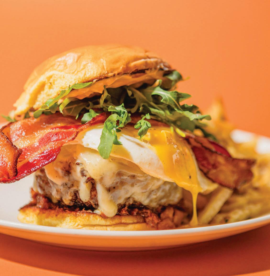 An eight-ounce ground chuck and brisket patty, black truffle cheddar, bourbon-bacon jam and chipotle aioli.