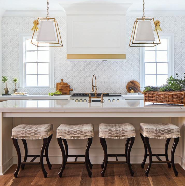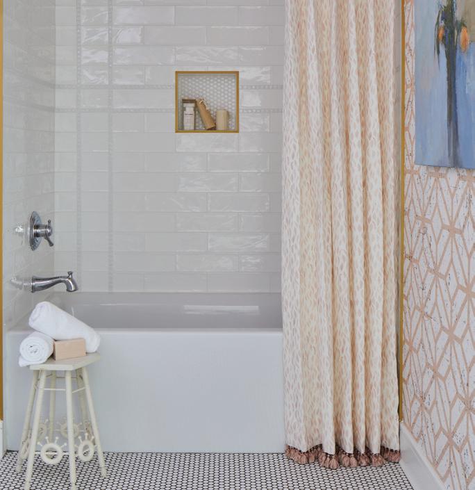 BY KATELYN R UTT | PHOTOS COU R TESY OF COU R TNEY MELLOTTThroughout the decades, walls have stood as canvases for selfexpression, embracing a range of trends—from paint to silk, tapestries, mosaics and beyond. We now find ourselves amidst the resounding comeback of an interior design classic: wallpaper. Gone are the days when wallpaper was relegated to floral and vintage patterns; today, it re-emerges as a dynamic and versatile tool that allows designers to break free from traditional constraints. From swirling watercolor hues to daring patterns and personalized murals, wallpaper now has the ability to create spaces filled with harmony that reflect the distinctive and multidimensional essence of those who call them home.