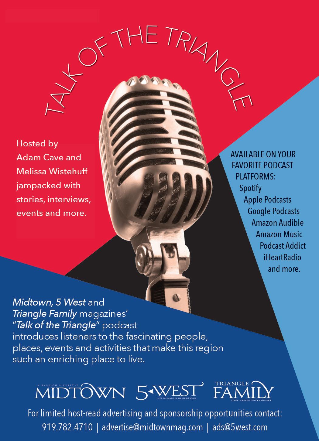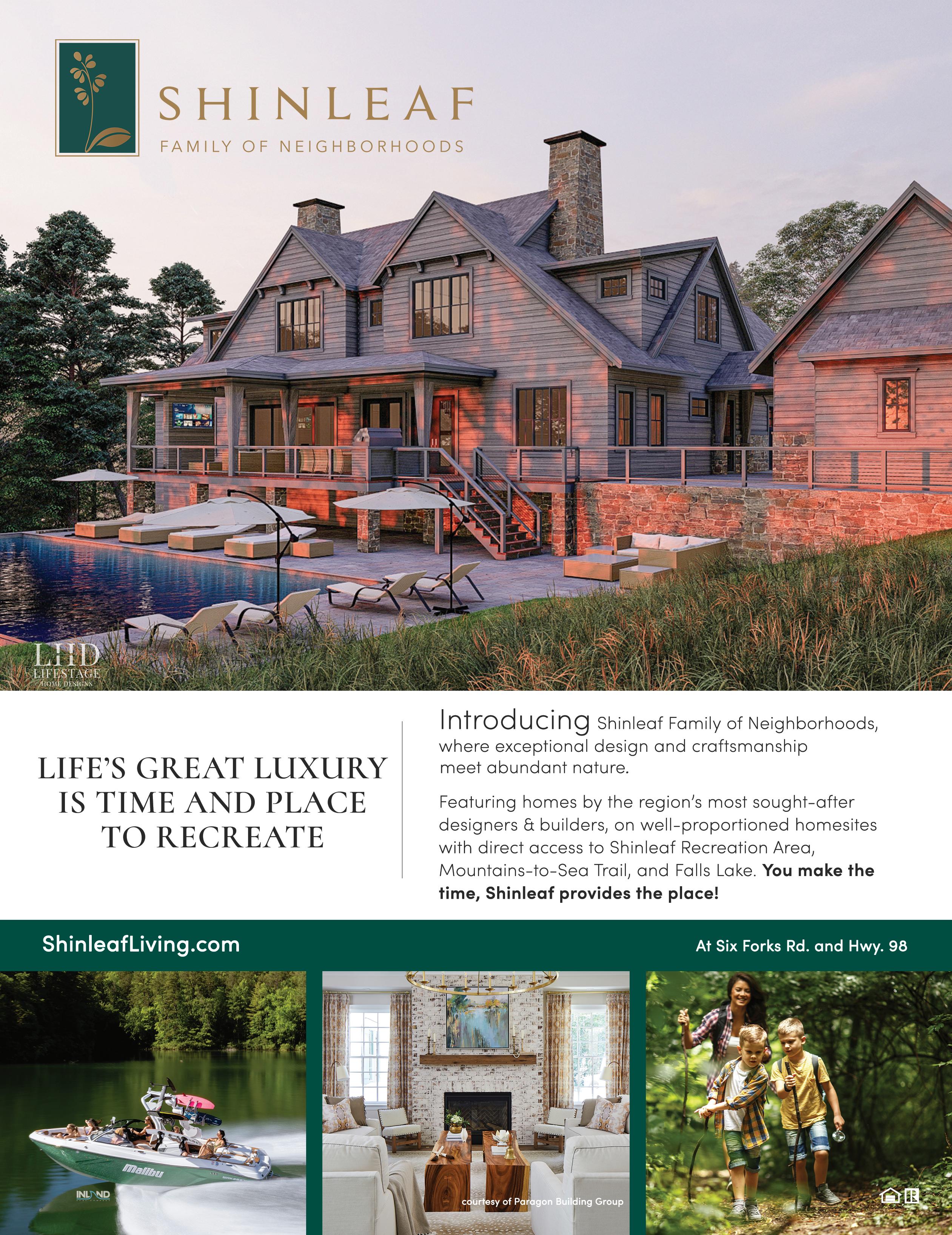 This issue includes several articles on home design (the photos are beautiful!) that reveal ways in which current cultural shifts are changing how we live our day-to-day lives. For example, in a piece on a Wakefalls neighborhood home in Raleigh, Kristen Schrum writes about ways in which the work-from-home culture has influenced people to emphasize warmth in their personal spaces. Before the pandemic, people wanted a light, almost ethereal quality in their homes. They now seek grounding and comfort, and the Wakefalls home design reflects that emphasis.