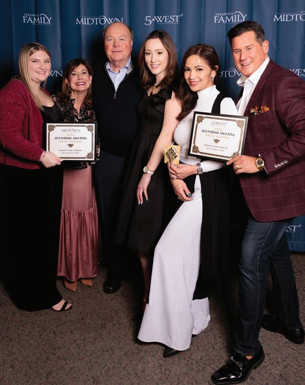 The Midtown and 5 West staff hosted their annual Diamond Awards celebration January 18 at the North Carolina Museum of Natural Sciences in Raleigh, during which they presented certificates to gold winners and decals to gold, silver and bronze winners. Melissa Wistehuff emceed the event, which honored the best of Raleigh and Western Wake as selected by the magazines’ readers. Guests enjoyed charcuterie delights, desserts and beverages from Rocky Top Catering, a champagne wall from Greenhouse Picker Sisters and 360° photo experiences from Triangle Twirl.