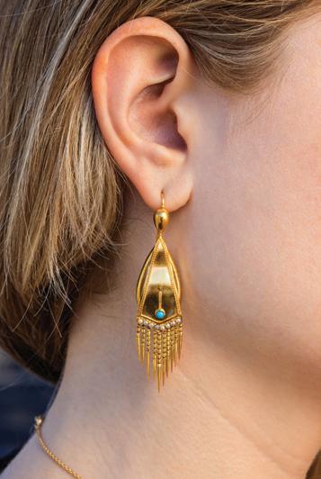 V ictorian 18-karat yellow gold turquoise-and-pearl drop dangle earrings with tassels | $4,000
