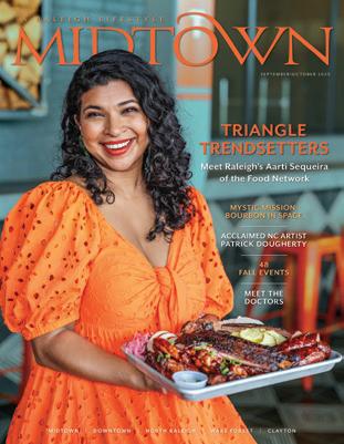 14 | midtownmag.com FEATURES 28 TRIANGLE TRENDSETTERS Meet six influencers who now call the Triangle home 42 MYSTIC MISSION Durham bourbon-makers aim for the cosmos 50 INTERTWINING INSTINCTS Patrick Dougherty brings sticks to life 54 FALL FUN IN THE TRIANGLE AND BEYOND Discover 48 ways to enjoy the season 60 THE MICROWEDDING MOVEMENT Explore the trend behind a more intimate celebration 64 THE PURSUIT OF COLLEGE SPORTS D1 athletes offer pre-commitment advice CONTENTS
