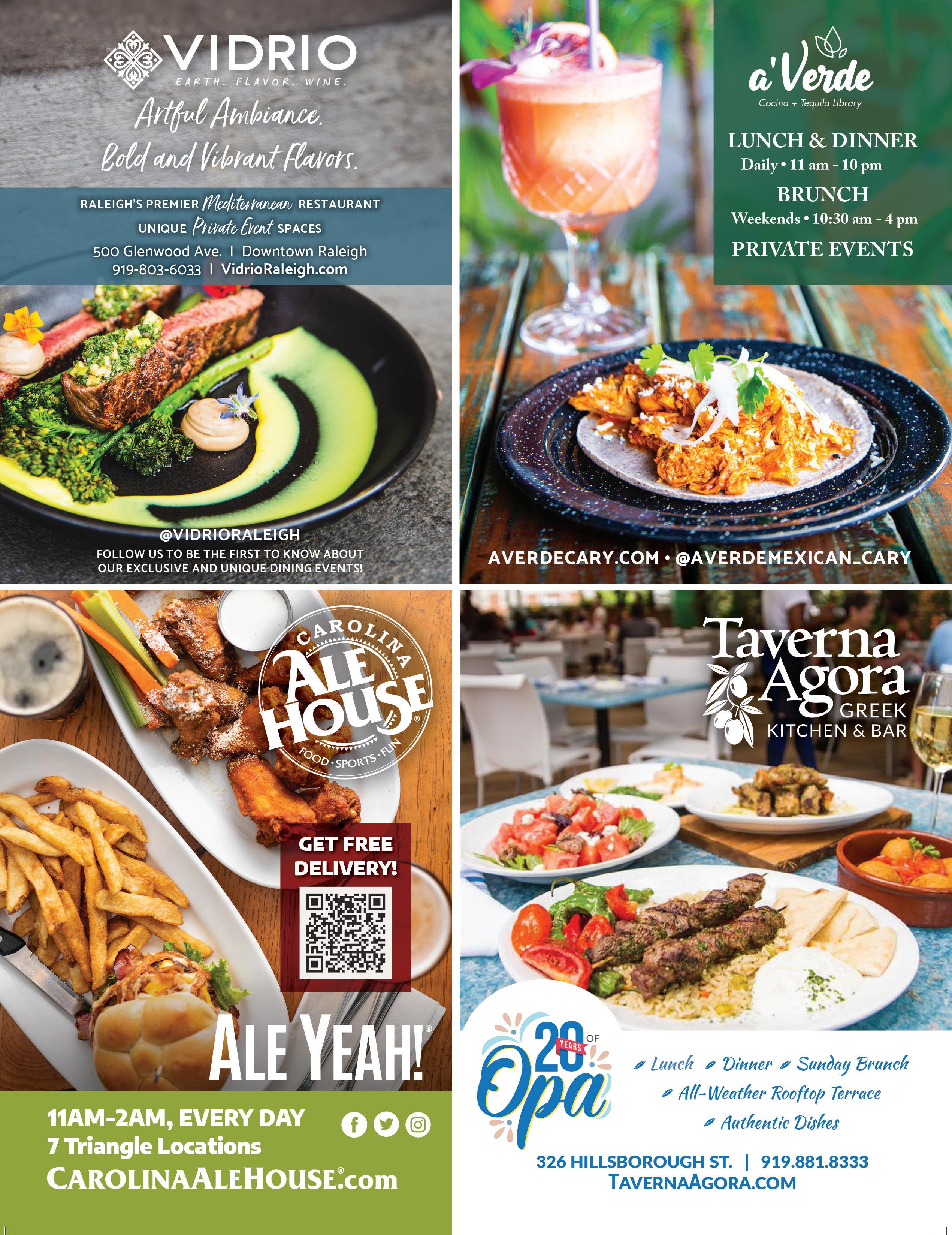 As such, we have baked up a recipe for the good life that is luring celebrity influencers. In “Triangle Trendsetters” on page 28, get to know foodie influencer Aarti Sequeira—the woman behind the Food Network’s “Aarti Party.” Sequeira dishes on why she, her husband and their two daughters decided to leave LA for Raleigh, and she shares some of their favorite spots here. You’ll also meet Durham’s Joy Caracciolo, creator of the “Joy Eats World” blog and social media accounts; self-described “OG Influencer” Jenna Cooper Hudson, who now lives in Raleigh after appearing on ABC’s “The Bachelor” and “Bachelor in Paradise” in 2018; “Meals She Eats” authors Tom and Rachael Sullivan, who also live in Raleigh and have appeared on “Today” and the “Rachael Ray Show;” and Cheyenne Levinson, creator of the Triangle Families Explore social media accounts and Little Oak Collective, a children’s clothing consignment boutique in Raleigh’s Village District.