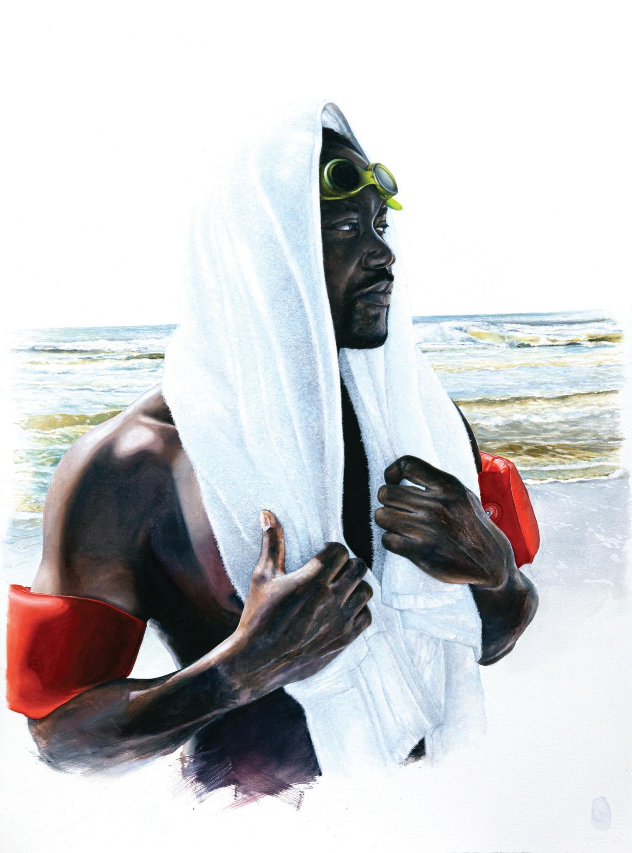 “With each brush stroke I seek to express, in a more perfect way, a response to the complexities within our culture, history and my own internal struggle. Water is where I am most vulnerable—it’s a place to intersect with my authentic self. I encourage others to self-examine, question the false boundaries that separate us, and view the interconnectedness of our common existence.”