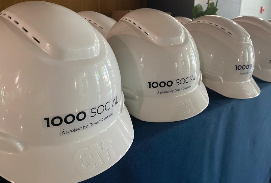 The Exchange Raleigh, a Dewitt Carolinas project, hosted the official topping-out of the development’s flagship office tower, 1000 Social, with its commercial real estate leasing partners, CBRE Raleigh. Located at 1000 Social Street, 1000 Social is a rising new landmark in Midtown Raleigh, and its class-A office tower is designed to embrace wellness and professional growth, support businesses and help employees thrive. Set on a 4-acre park in the heart of the 40-acre mixed-use development, 1000 Social will be one of the first office buildings in Raleigh to be both LEED- and WELL-certified. The building is currently 50% preleased.