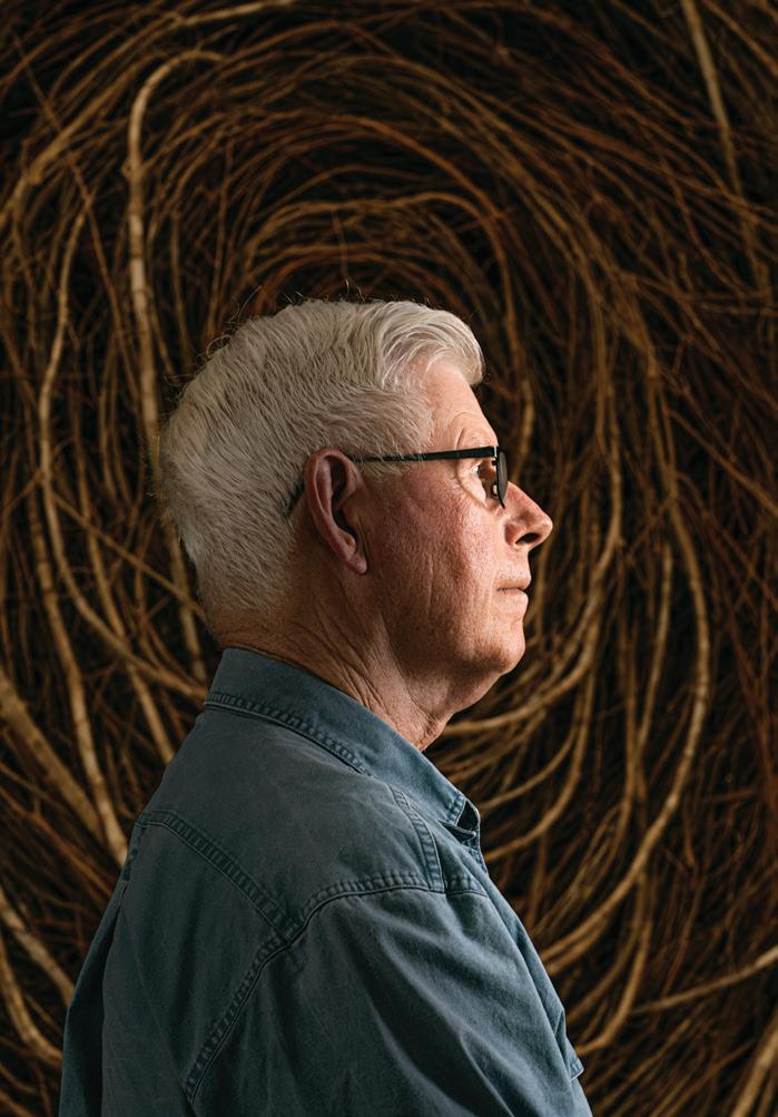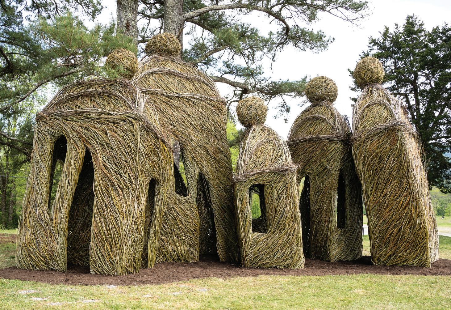 If you’ve been to the North Carolina Museum of Art in Raleigh, you’re already familiar with renowned international sculptor Patrick Dougherty, whose “Out of the Box” sculpture perfectly represents how he pieces tree saplings together to create whimsical works of art. Learn more about Dougherty and his masterful stick sculptures in “Intertwining Instincts” on page 50.