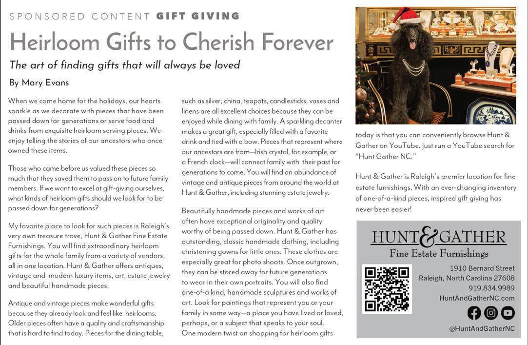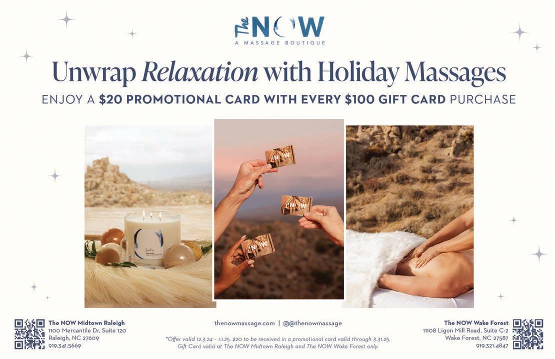 Depending on when you are reading, the holiday season is either approaching or it’s already upon us. In this issue, we cover exciting ways to celebrate the holidays in Raleigh— and ways people are giving back to the community during this season of generosity.