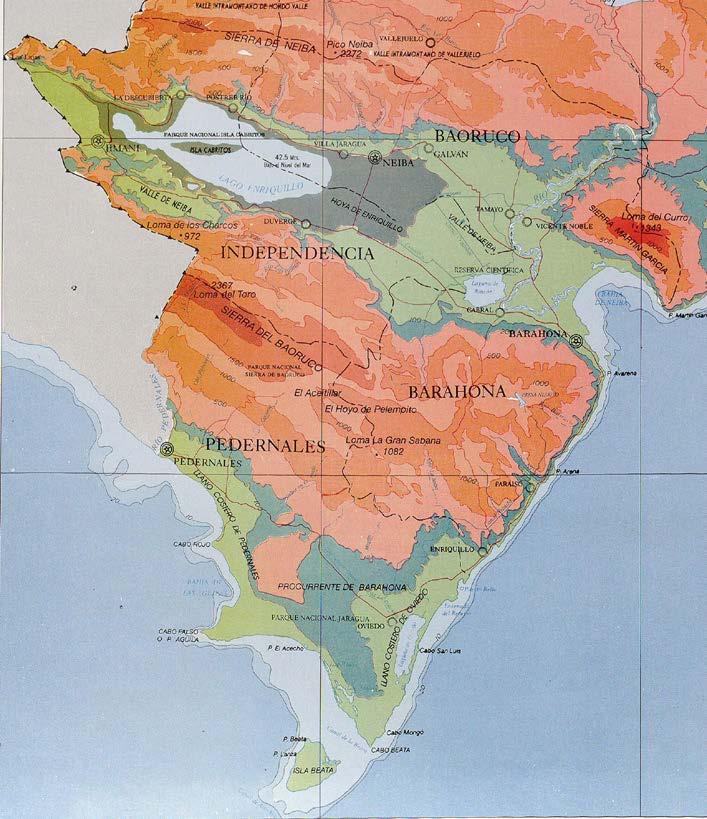 ! ! ! ! ! ! ! ! ! ! ! R R ! R R R R ! ! ! R ) !) R R ) ) ! R R ! ! ! R ! ) ) ! R R ! ! ! ! ! !! R R ! ! ! ! R R ) ! ! ! ! ! ! ! ! ! ! ( ( ^ ! Manuel Díaz Cortadera Arroyo Grande Enriqu llo La Guama Boca Naran o E Lechoso La Ciénaga El Cachón E Curro LagunaCabraloRincón CañadaEHiguero Lemba P Ava ena P A ena Pue o Be o BARAHONA 9 10 5 3 1 6 7 2 8 4 Juan Esteban Arroyo ElPuerto RíoBahoruco RíoSito RioArr i ba Río A r riba R o s o Cañad a a Jai b a RioCortico Cañada lasMercedita Cañada CelManiel añoCac hito Arroyo Hat co Arroyo B azo Seco Cañad aSeca Arroyo Naranj o ArroyoGrande Cañada G ande Arroyo Posimán Arroyo Infierno Arroy o Pa o mino ArroyoelCurro RioYaquede Sur CañadaPaimingo CañadaTurnino CañadadeMasaco CañadaCresteliandro Caña B l anco Cañada elHiguero ArroyoCebol í n CañadaBlanco Ar oyo Medina Cañada Guayavito Arroyo el L mon A royode Bergal CañadaManantial Arroyo Bu nga ArroyoBusu ArroyolaIsleta Ar o yo os Chupaderos Arroyode P ed a ArroyoElHigui t o Cañada Las Tayotas Los A rroyos Cañada Masacó ArroyoCoterra CañoCharco P ieto C a ñada Gue rero R o C i to Arroy o del Yeso ArroyoBasón Arroy o LasAv spas Cañadade P ure a ArroyoJuanMendez CañadaLaCotorra C a ñ o l o s B a s e n e s A r o y o J a v a r CañadaBusu ArroyoLaSalvia Cañad a materesa Polo Canoa O eda Mencía Payaso Arroyo Cabral La Paz Bahoruco Paraíso Caletón La Hoya E P no Leonardo El Peñón La L sta La Cueva Palo A to Fi ipinos El Platón Los Patos Fundación Los Cocos E Naranjo San R afael Jaquimeyes La Guázara Pescadería E Higüero Juan sidro Las Auyam as Vi la N zao Las Salinas Fondo Negro Buena Vis a E Naran al Arroyo Du ce Man e V ejo José Joaquín Qu ta Coraza Vicente Noble T erra B anca Los Charquitos Los Saladi los Puerto A ejandro 240000 240000 255000 255000 270000 270000 285000 285000 1 9 7 5 0 0 0 1 9 7 5 0 0 0 1 9 9 0 0 0 0 1 9 9 0 0 0 0 2 0 0 5 0 0 0 2 0 0 5 0 0 0 2 0 2 0 0 0 0 2 0 2 0 0 0 0 2 0 3 5 0 0 0 2 0 3 5 0 0 0² PROVINCIA BAHORUCO PROVINCIA INDEPENDENCIA PROVINCIA AZUA PROVINCIA PEDERNALES M A R C A R I B E Bahía De Ne ba 8 PR OVINC IA BARAHONA M NIST ER O DE MED O AMBIENT E Y RECURSOS NATURALES Esca a: 1:150 000 Repúbl ca Dom nicana AREAS PROTEGIDAS (LEY 202 04, DECRETO 571 09) 2 S erra Mar n Ga c a 7 Laguna Cab a o R ncón 5 Padre M gue D Fuerte 9 M rado de Para so 10 Carre e a Cabral Po o 8 Barrero 6 Humeda es de Ba o Yaque de Sur LEYENDA I PARQUES NACIONALES A Parque Naciona 3 S erra de Baho uco II MONUMENTOS NATURALES B Ref ug io de V id a S i lve stre C Santuario Mar no AREA DE PROTECCIÒN ESTRICTA 1 Arrec fes de Suroes e 4 Anacaona VI PAISAJES PROTEG DOS A V a Panorámica V RESERVAS NATURALES A Reserva Forestal V AREAS DE MANEJO DE HAB TAT/ESPECIES A Ref ug io de V id a S i lve stre k% m² 18 39 1 83 1 84 2 12 3 63 143 40 181 65 12 35 26 39 33 53 66 95 21 34 12 04 2707 41 9 92 Carre era Pav mentada T ans ab e Todo e Año Carre era no Pav mentada Trans tab e en T empo Seco Vehículo Todo Te rreno Carre era no Pav mentada T ans tab e po Todo T po de Veh cu o Ríos y Arroyos SI MBOLOG A L m e Prov nc Sa ecc ón Mun c pa Dist i o Mun c pa Cabecera de Mun c p o Lagos y Lagunas ( ( ! Cap ta de Prov nc a REP DE HA T REPÚBL CA DOMINICANA M AR CA R I B E O C EAN O ATLANTICO Edic ón: Sep iembre 2010 Fuente S ecretar a de Es ado de Med o Ambiente y Reursos Na ur ales R ) ) Zona de Amor guam en o (300 M) L m e Munic pa