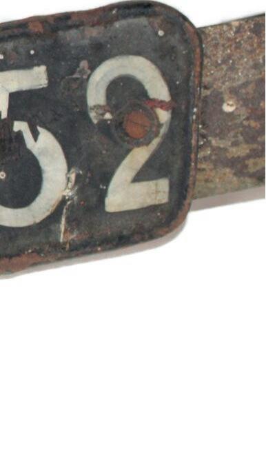 Boucle aluminium de fabrication RS&S - Patelette datée 1937 avec marquage fabricant Ceinturon de taille 100 - Provenance : Libération de Paris