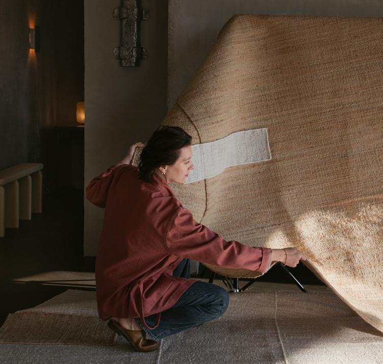 L.F.T. Le design textile, à partir de matériaux bruts, diffère, mais reste profondément connecté à mon univers tactile. Les couches subtiles et la profondeur créées conservent une dimension sculpturale pour moi. Il est en effet fascinant de voir comment un tapis peut transformer un espace. Dans mon studio, en photographiant les premiers échantillons, j’ai remarqué que mon plafond en béton brut se mettait en dialogue avec le tapis Monograph posé au sol. Ces tapis ouvrent de nouvelles perspectives, un nouveau potentiel car, pour moi, un tapis n’est pas seulement une simple couche douce, c’est aussi une sculpture. —