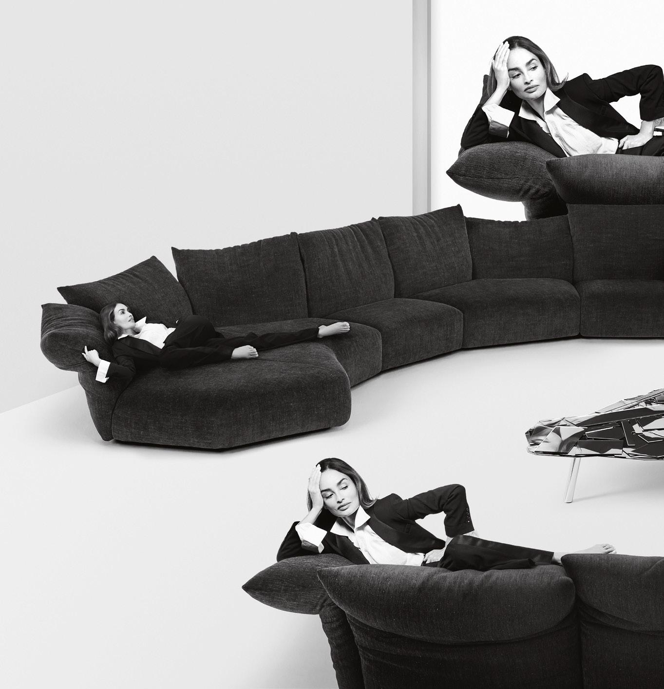 Canapé Standard et fauteuil Chiara de Francesco Binfaré. Les dossiers et accoudoirs «intelligents», ajustables au choix, offrent un maximum de confort. Le système d’assise est modulable pour répondre à tous les besoins.