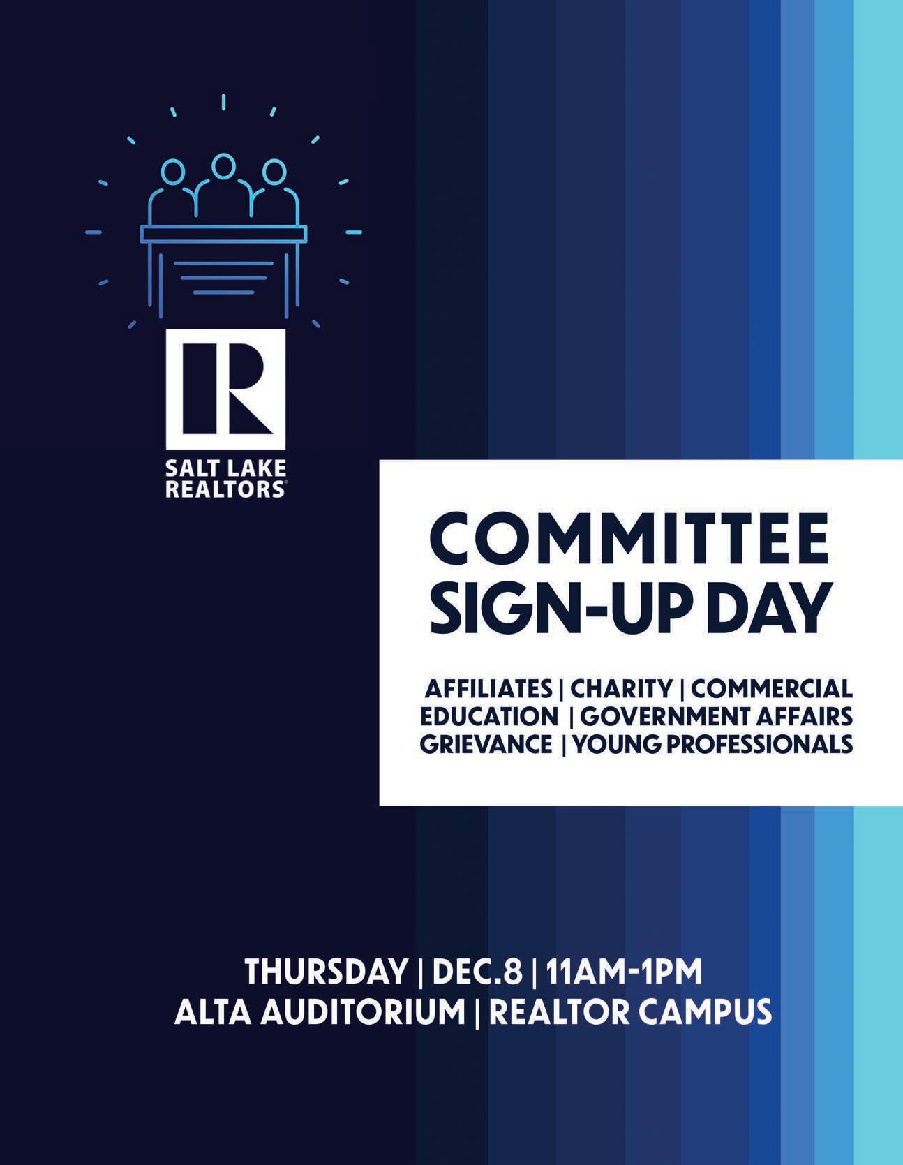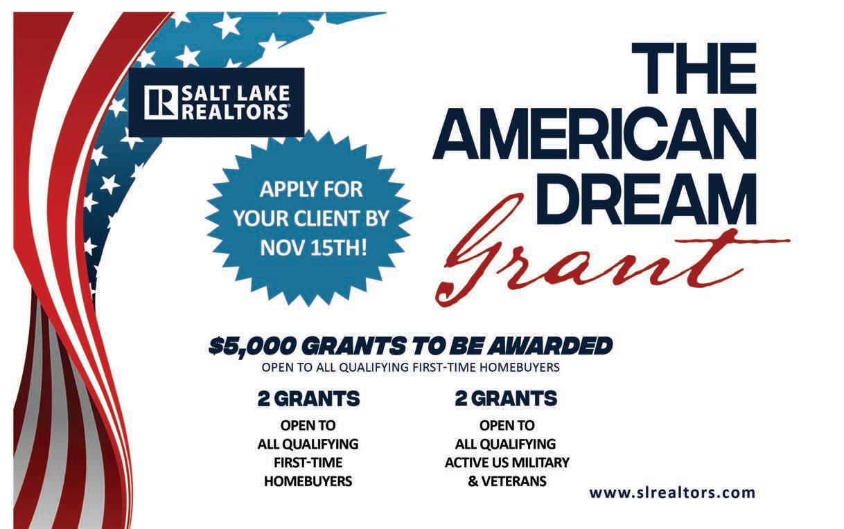 Lake Realtor® Magazine is self-supporting. The advertisers in this magazine pay for all production and distribution costs. Help support this magazine by advertising. For advertising rates, please contact Mills Publishing at 801.467.9419. The paper used in Salt Lake Realtor Magazine comes from trees in managed timberlands. These trees are planted and grown specifically to make paper and