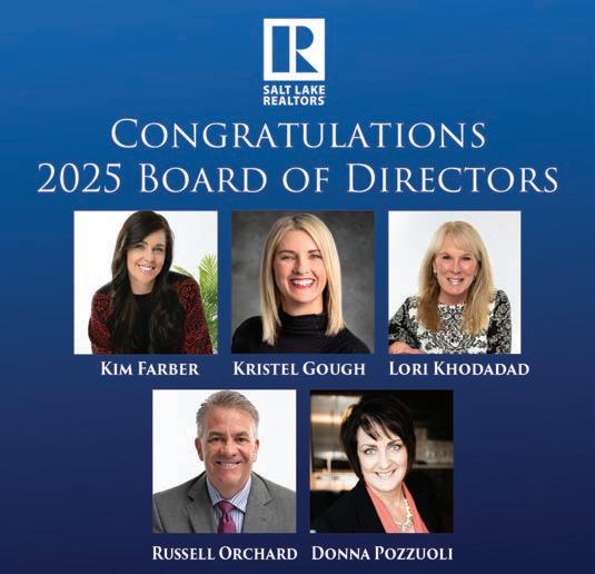 The Salt Lake Board of Realtors® congratulates Kim Farber, Kristel Gough, Lori Khodadad, Russell Orchard, and Donna Pozzouli on their election to the Board of Directors. These candidates received the highest number of votes from the general membership and will each serve a four-year term starting Jan. 1. The 16-member Board of Directors® guides the association’s mission to lead in providing support to professional Realtors® through advocacy, education, communication, and service.