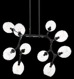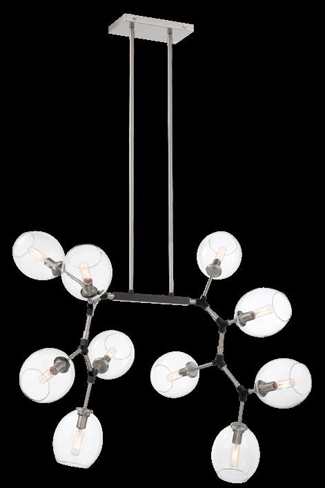 21 Item Type Size Lamp Finish Shade A. P1360-66A 10 Light Island Light 501/2"W x 151/4"H x 231/2"Ext 10-60W Candelabra Base Coal Clear Glass B. P1360-619 10 Light Island Light 501/2"W x 151/4"H x 231/2"Ext 10-60W Candelabra Base Brushed Nickel and Coal NEXPO