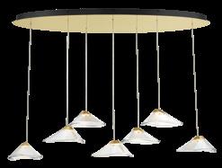 23 SNEER Item Type Size Lamp Finish Glass A. P5402-718-L 7 Light LED Pan Pendant 551/4"W x 261/2"H x 193/4"Ext 14W LED DC Coal and Sun Gold Tinted Pressed Glass