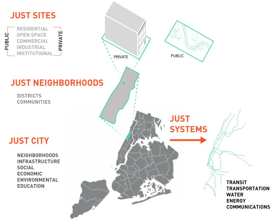 These engagement experiments taught us valuable lessons about what defined the Just City. First, our aspirations for a Just City are more clearly articulated when we imagine its values as an action required to address a condition of injustice. For example, if a community identifies a lack of public transportation and lack of interaction between rich and poor populations, they then seek a Just City that demands the values of increased access and social and spatial connectivity.