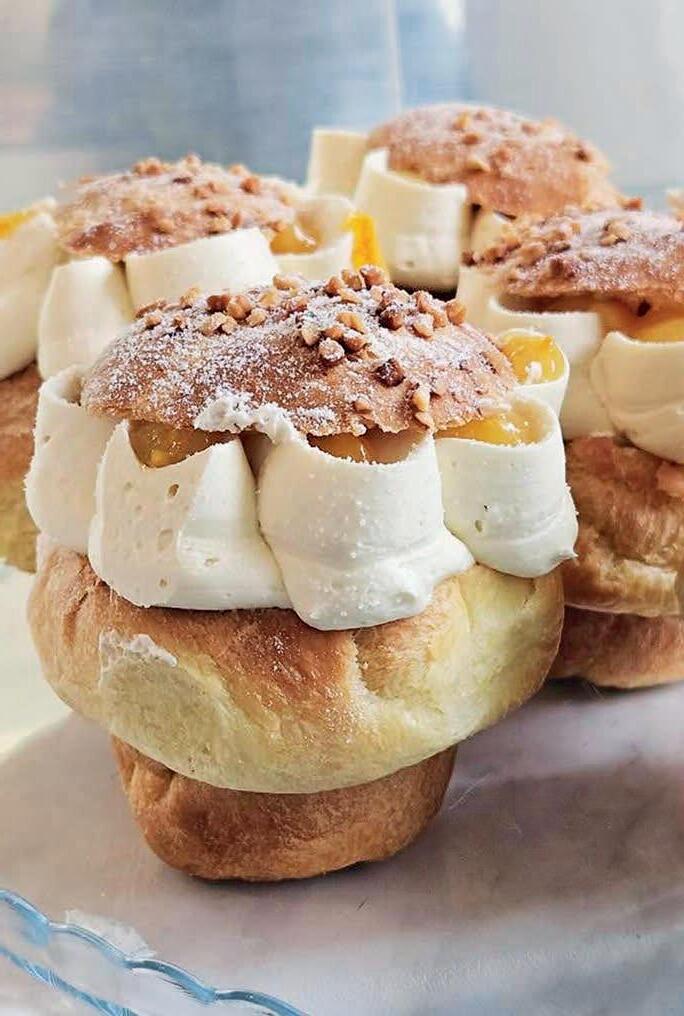 ciasteczkoWe inspiracje Czerpiemy również pomysły ze znanych i lubianych smaków ciast czy batoników. Hitem naszych seminariów były dwa smaki. Pierwszy to „croissant z pistacją”, czyli lody przygotowane na bazie pasty o smaku ciast francuskich i drożdżowych (Giuso Grandi Levitati) z dodatkiem masła, przełożonych kremem pistacjowym Giuso Nerella Pistachio. Co ważne, pasta jest uniwersalna, można z niej przygotować także lody o smaku babki drożdżowej, donutów czy rollsów. Drugi smak to pączek, oczywiście z różą, czyli ten najbardziej klasyczny. Do przygotowania masy lodowej użyliśmy pasty Irca Biscotto Premium. Lody przełożyliśmy nadzieniem z płatków roży.