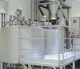 stanowiska przygotowania ciast z systemem receptur BakerLink Stanowiska przygotowania ciast połączone z instalacją silosową wyposażone w kosz zasypowy mąki, dotykowy panel z recepturami, wagę najazdową, wagę stołową do ważenia mikroskładników oraz dozownik wody.