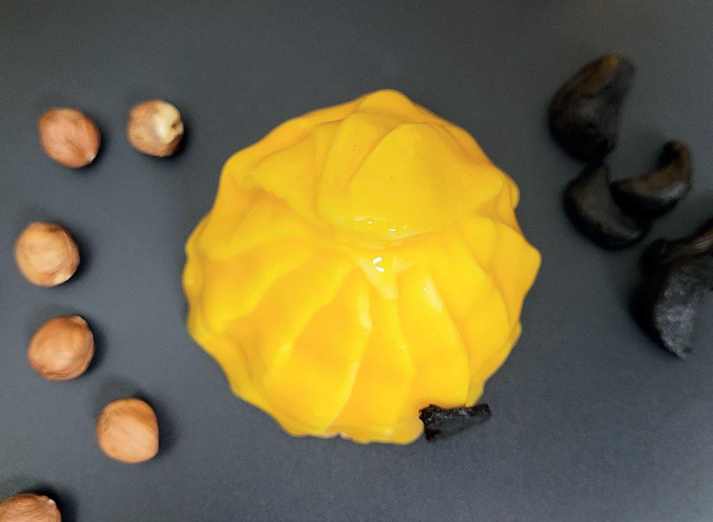 Grzaniec, cukier i jaja podgrzać do 80°C, ciągle mieszając, dodać Sanett. Odstawić na 5 minut, dodać zimne masło i pastę imbirową. Mieszać, aż masło połączy się z kremem. Wlać do foremek i zamrozić.