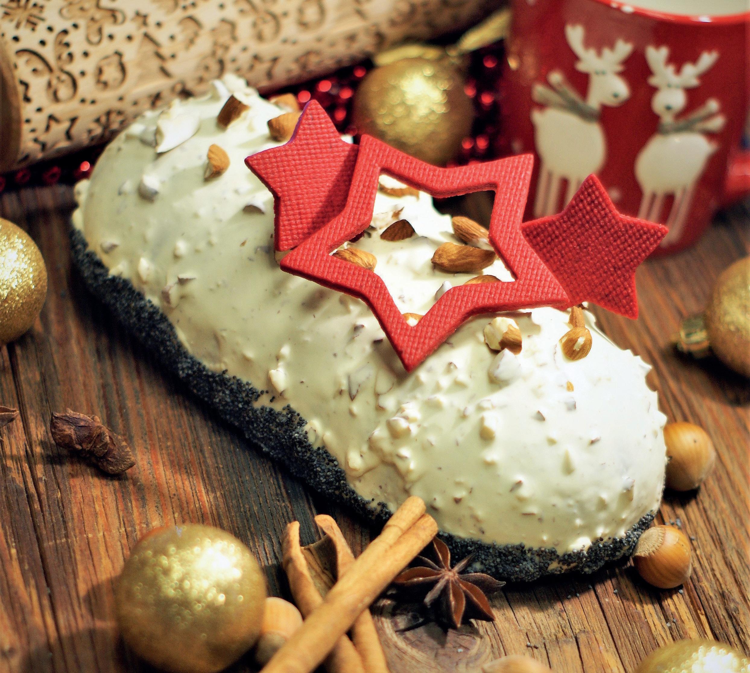 Zamsz przygotować zgodnie ze sztuką. Spód z crunchem włożyć do rantu o średnicy 24 cm. Wylewać część musu, włożyć zamrożony insert i zakryć resztą musu. Tort zamrozić, po czym wyciągnąć z rantu. Do boków tortu przykleić kruszoną resztę spodu makowego i znów mrozić.
