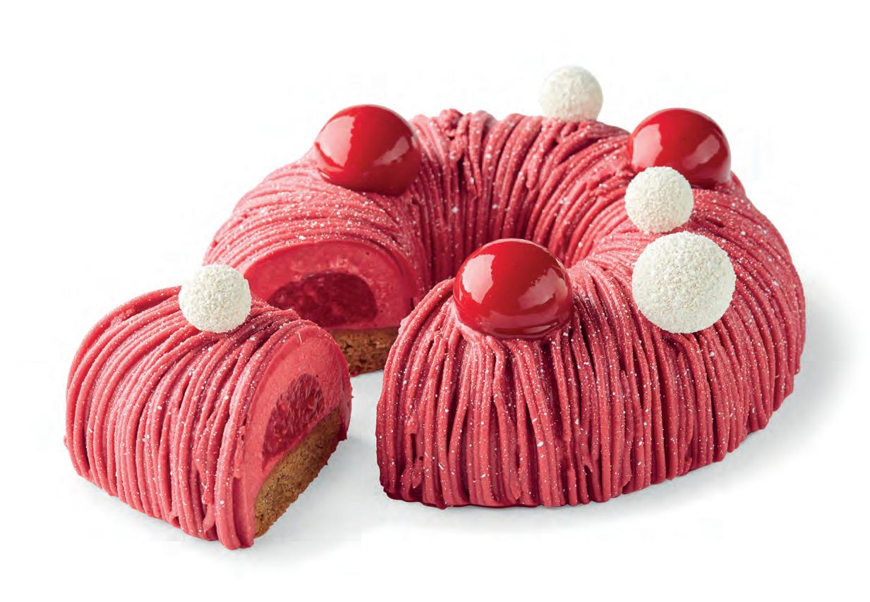 Krem chantilly wiśniowy 60 g skoncentrowanej pasty Wiśnia Prospona 1/3 ciepłego kremu chantilly połączyć z skoncentrowaną pastą wiśniową i wylać do okrągłego rantu o średnicy 16 cm.