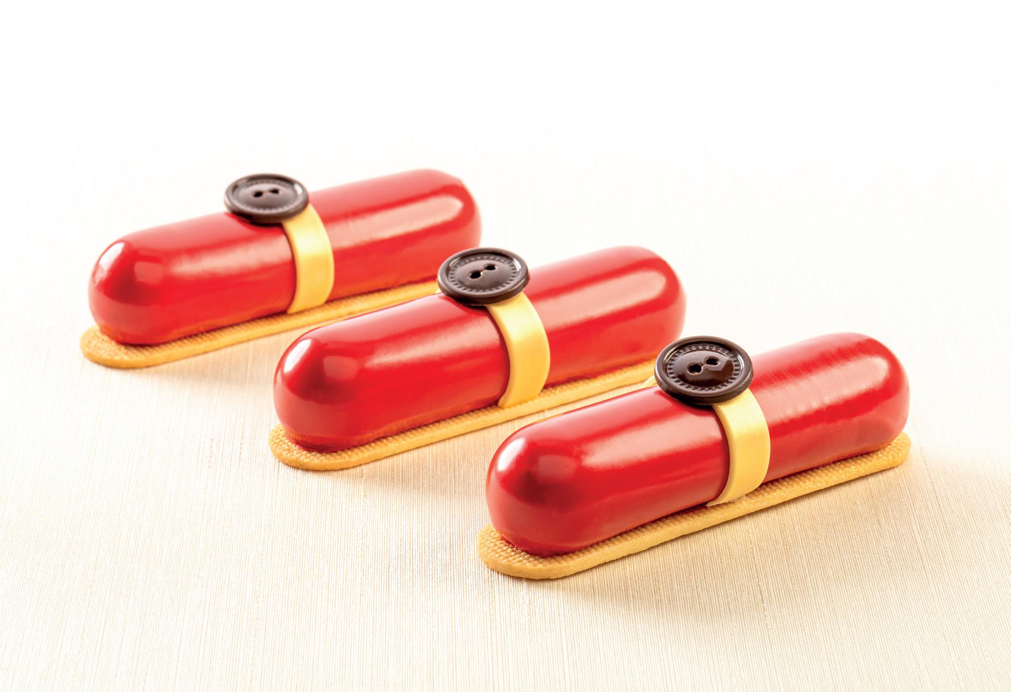 Wszystkie składniki (oprócz crispearls) wymieszać w misie miksera do powstania gęstej, gładkiej, zwartej masy. Dodać crispearls i wymieszać ręcznie z ciastem. Formować za pomocą formy silikonowej. Dla najlepszych rezultatów do zamoczenia cakesicles użyć temperowanej czekolady. Z podanej ilości ciasta wychodzi 10 średniej wielkości sztuk.