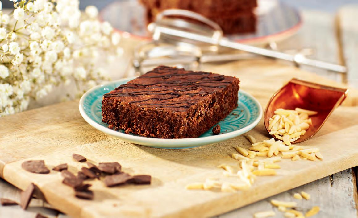 Cukier kryształ 70 g Mąka migdałowa 45 g Śmietanka 75 g Mąka pszenna 75 g Proszek do pieczenia 5 g Kakao 15 g Gorzka czekolada 30 g Przyprawa do piernika 3 g Suszona śliwka 50 g