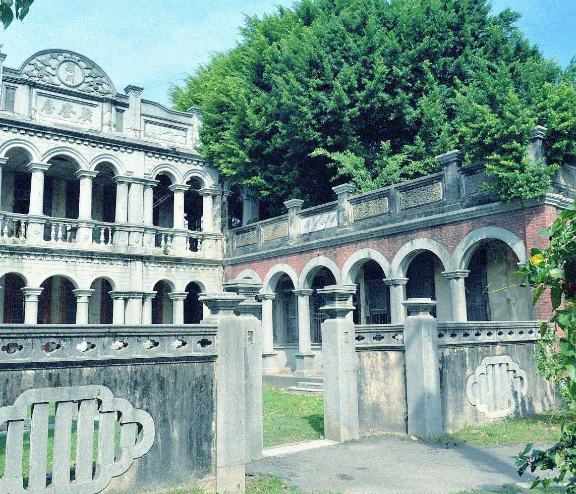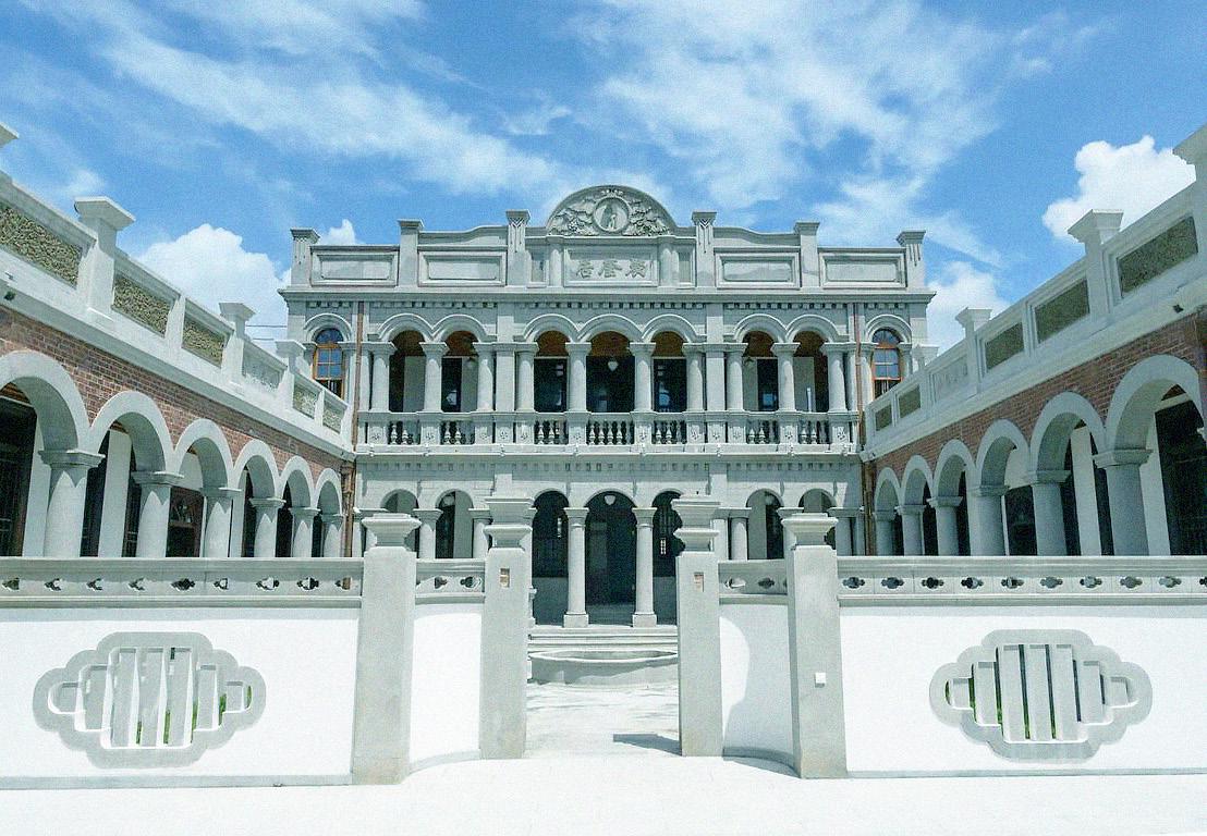 「聚奎居」之美在於主樓採取仿 巴洛克西式風格二層建築,左 右護龍則保留傳統三合院ㄇ字格 局,與傳統風水之如意池與牌 樓,施工採用當時高級建築「洗 石子」與「磨石子」工法,每一 個建築紋飾花樣手工細細打造, 光從建築外觀的霸氣就能展現出 主人家的財力雄厚。