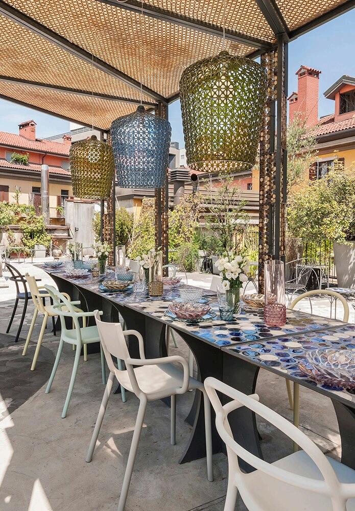 El taburete Smatrik pertenece a la familia de asientos creada porTokujinYoshioka y se realiza con un molde que permite recrear una malla tridimensional, superpuesta y trenzada: gracias a una tecnología especial de estampado por inyección, las capas de policarbonato transparente o coloreado enmasacreanunaestructuraquepareceunamallametálica.