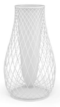 La lámpara Kabuki está hecha con inyección. La tecnología de inyección permite una estructura de malla que reproduce el encaje con una superficie concretaperforadadesdedondeseexpandelaluz.