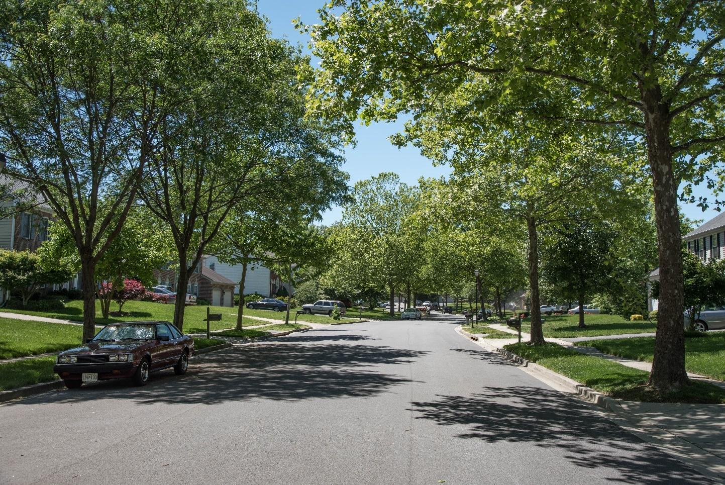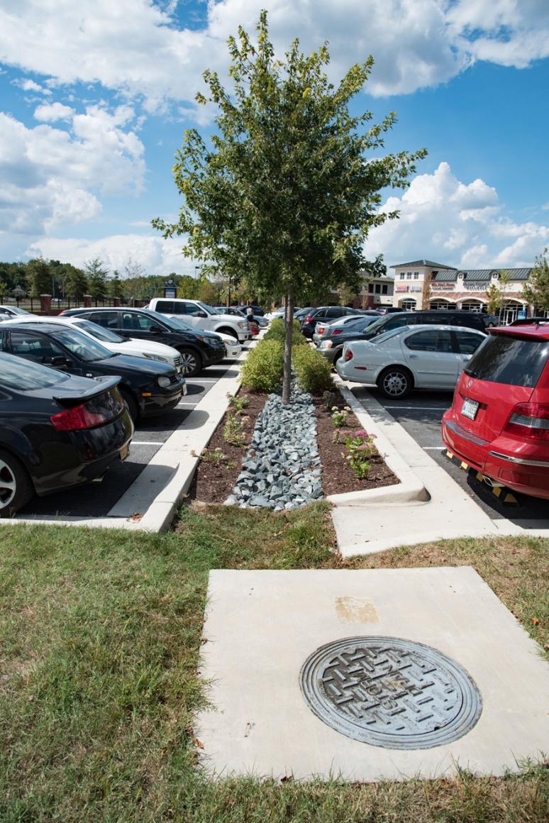 18. Bowie Residential Neighborhood . Street trees shade roadways, sidewalks, and parking lots, lowering the temperature of stormwater runoff from these areas and minimizing the risk of thermal pollution of local stream sand wetlands
