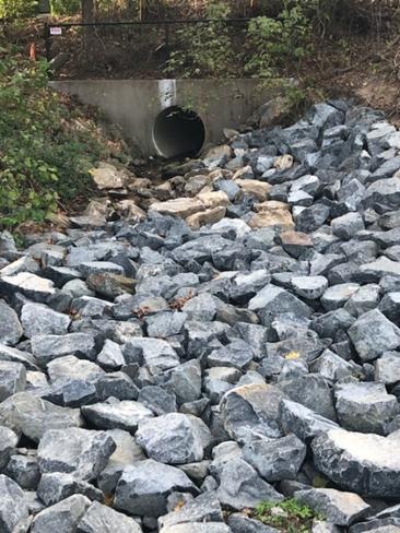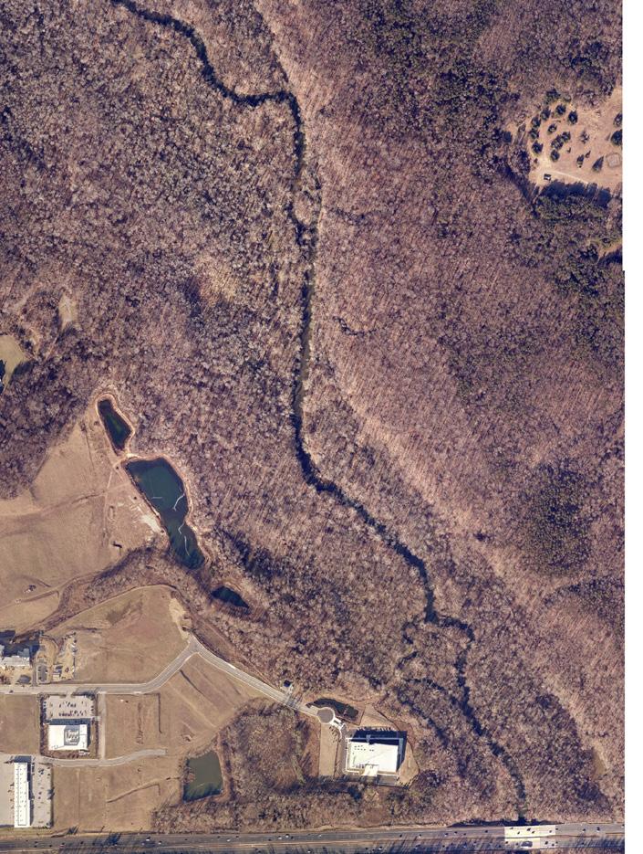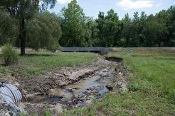 The stream pictured in Figure 16 is shaded by tree canopy. However, the exposed roots in the left foreground indicate heavy streambank erosion, while the gravel buildup and silted streambed all point to the conveyance of high volumes of stormwater runoff. The Baysox Stadium development within the southwestern quadrant of the US 50/US 301 intersection, as well as parts of the Bowie Town Center and portions of Collington Road, US 50, and US 301, all drain to this tributary.