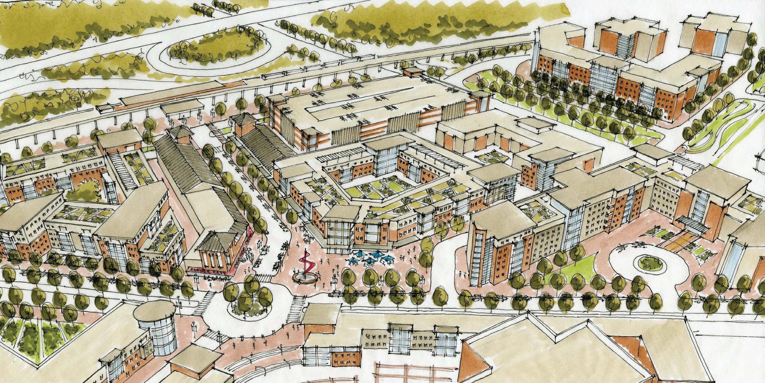 Town square urban park will be a placemaking amenity to be included as part of joint development of WMATA land south of the station.