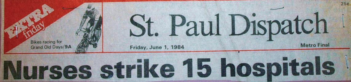 1984 6,000 Twin City nurses go on strike at 17 hospitals. It held the record for the largest Nurses’ Strike in US history until 2010. Issues involved layoffs, resulting from changes in Medicare reimbursement structure (DRGs), and the application of seniority. New Contract was ratified July 9, 1984. Private Duty Interest Group disbands; it had been the original backbone of MNA. MNAF makes first grant of $2500.00.