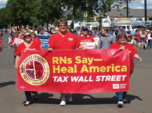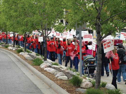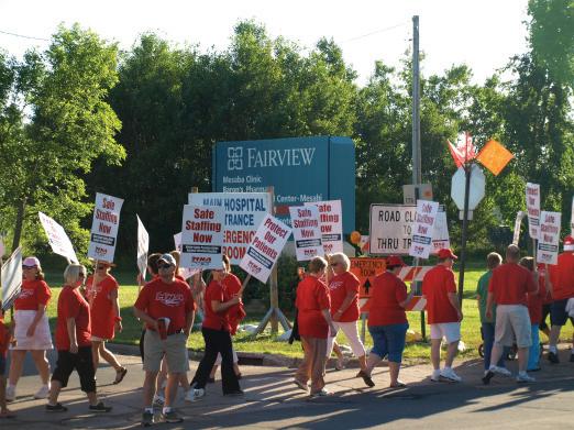 Nurses celebrate their efforts to restore funding for medical assistance to Minnesota’s most vulnerable populations as Governor Dayton signs an executive order to expand Medicaid under the new federal Affordable Health Care Act. MNA and National Nurses United (NNU) lead marches and rallies in Madison, WI in response to workplace threats instituted by Gov. Scott Walker. Picketing and a one-day strike in Hibbing. Day of Action on Sept. 1 sees nurses in six different locations in Minnesota and dozens of other cities across the nation promote the national Main Street Contract campaign calling for a tax on Wall Street to help Main Street America. Delegates at MNA’s 106th annual meeting vote for organizational structural reform to streamline operation. District operations will no longer be supported by the state offices, and they return to their original independent status.