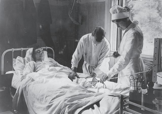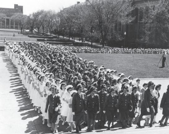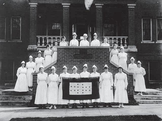 1917 200 nurses enroll in the Red Cross Nursing Service (RCNS). Recruitment of nurses for war service. Base Hospital No. 26 organized at the University. Student Nurses Reserve formed.