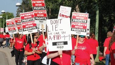 2011 Nurses celebrate their efforts to restore funding for medical assistance to Minnesota’s most vulnerable populations as Governor Dayton signs an executive order to expand Medicaid under the new federal Affordable Health Care Act. MNA and National Nurses United (NNU) lead marches and rallies in Madison, WI in response to workplace threats instituted by Gov. Scott Walker. Picketing and a one-day strike in Hibbing. Day of Action on Sept. 1 sees nurses in six different locations in Minnesota and dozens of other cities across the nation promote the national Main Street Contract campaign calling for a tax on Wall Street to help Main Street America. Delegates at MNA’s 106th annual meeting vote for organizational structural reform to streamline operation. District operations will no longer be supported by the state offices, and they return to their original independent status.