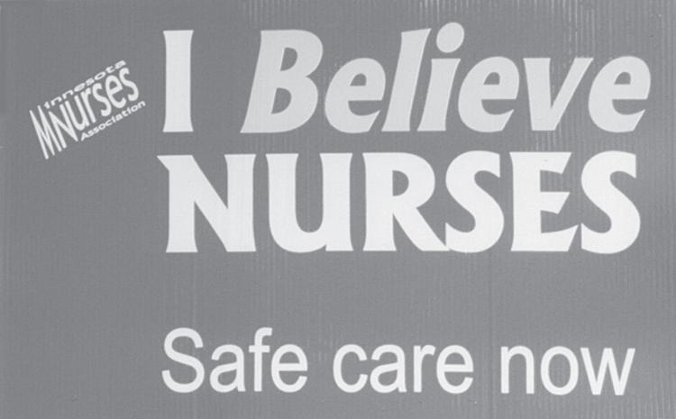 2012 Staffing for Patient Safety Act requiring minimum standards of nurse-to-patient staffing is introduced. After succeeding in several committees, it still fails to reach a floor vote. Nurses lend their voices to rally against attempts to advance legislation attacking workers’ rights to form and maintain a union, commonly known as Right-to-Work measures. Member actions in Albert Lea, Marshall and Bagley demonstrate determined to fight for contract rights and are willing to be visible. In an unprecedented and telling move, Twin Cities employers approach Twin Cities nurses in December offering to negotiate a wage-only, three-year contract, promising to keep all other aspects of the contract intact. Nurses agree and ratify a 4.5% wage increase.