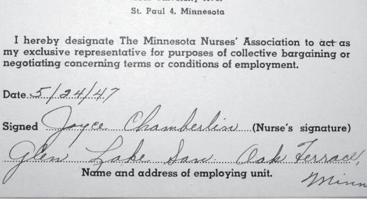 1907 After two years of organized lobbying effort, members of the newly formed Minnesota State Graduate Nurses Association (later named the Minnesota Nurses Association) achieve legislation creating the Minnesota Nurse Practice Act.