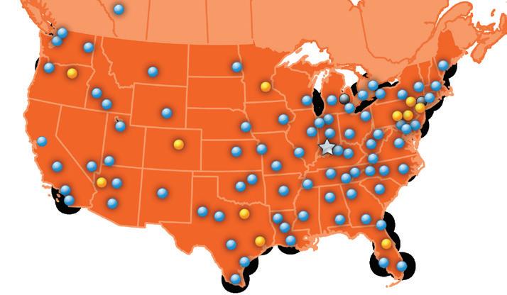 93 locations serving you nationwide and into Canada. ■ Family owned and operated ■ Personalized service ■ FREE online ordering ■ Toll free phone lines ■ Spanish bilingual call center ■ Full service IT staff to manage networks, infrastructure, phones, data and security ■ Over 900 product lines ■ Over 3 million sq. ft. of warehouse space ■ Company owned fleet ■ 500+ trucks serve 48 states direct ■ 12 distribution centers MeyerDistributing.com | 800.MEYERUSA