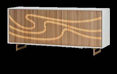 he design of the Tokyo Sideboard is characterised by simple lines and well-defined geometric shapes. Its structure, available with three doors, showcases a harmonious balance between the materials used. The natural oak tree has a touch of warmth and autenticity, while the lacquered structure, available in pearl or black, adds a touch of modernity and refinement.