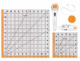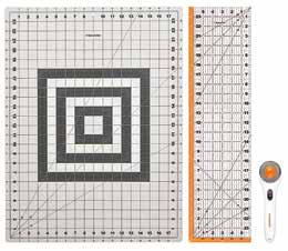 Not to be outdone by its smaller sibling, the 14” rotating mat set is sized right for tackling layer cakes and secondary cuts like a champ! All tools suitable for left/right handed Use.