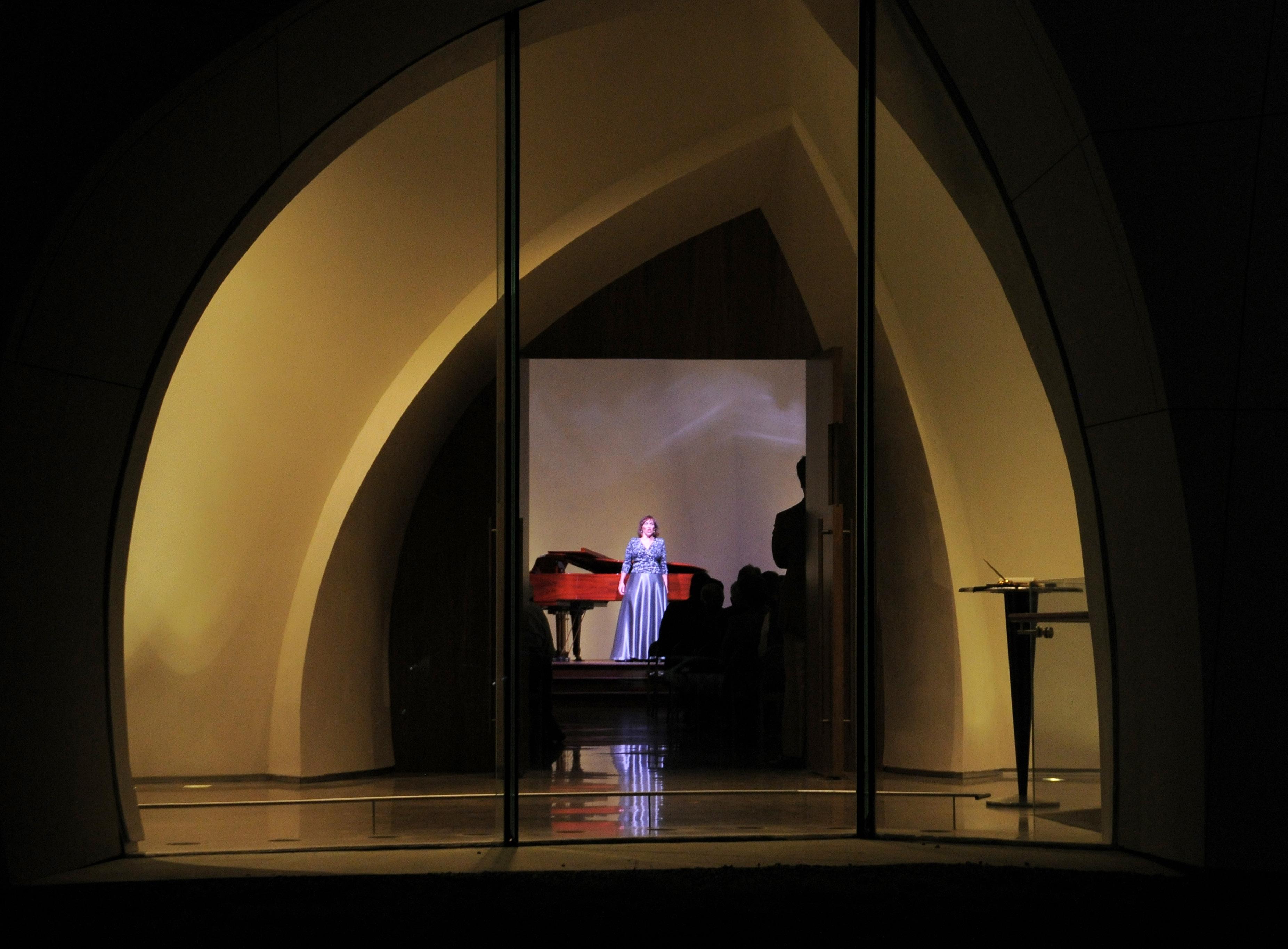 give you that feeling.” The Peace Chapel embodies that sentiment as it’s interior naturally draws the eye upward toward the soaring 46 foot ceiling and asymmetrical skylight.