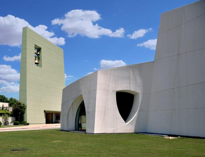Part sculpture, part architecture, a space that has a visceral effect on the visitor, the Interfaith Peace Chapel at Cathedral of Hope is the final work of architect Philip Johnson. Its curving walls and roofs offer no straight lines and in some ways is disorienting. That was intentional. It feels almost organic, yet very substantial and both inside and out is has a grace that leaves visitors in awe.