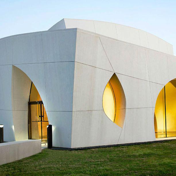 Intended as a space for people of all faiths, there are no outward symbols of religion, yet when one enters the main hall you are overwhelmed by the feeling that this is someplace special, someplace sacred. Unapologetically modern the peace chapel pushed the boundaries of construction. With no right angles each structuralmember was different and had to be designed by computer to match the asymmetrical curves of the interior and exterior.