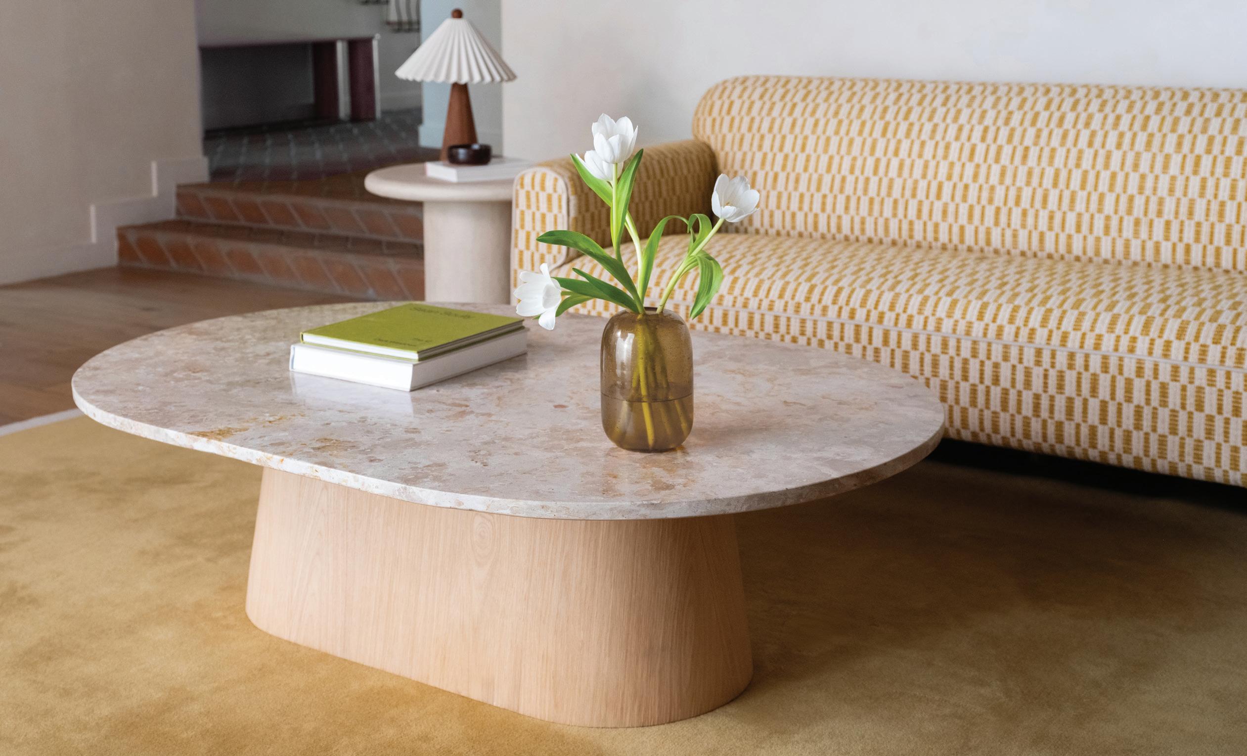 With its flowing form and layered materials, Naomi is designed to anchor spaces with both comfort and character.